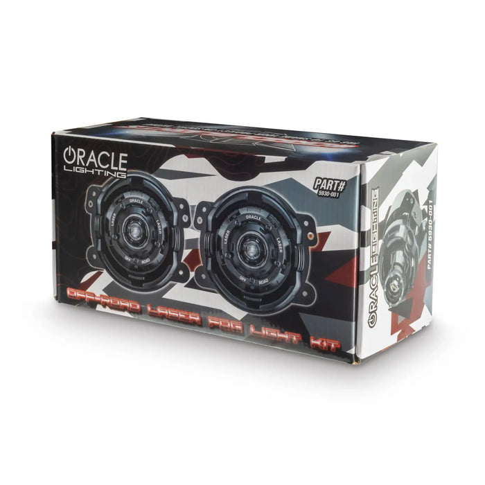 The new Laser module from ORACLE Lighting replaces the factory fog light with a super-focused Off-Road lighting module featuring a 15W Laser beam. Designed for High Performance Off-Road use, the 15W Laser Auxiliary Light Modules each feature a single Laser diode which produces a hyper-focused beam which throws light over 3,000 feet away allowing the user to see further distance for high-speed driving.Not only are these lights bright and project for an impressive distance, but the styling is also very innovative. The skeletonized mount holds the individual futuristic Laser Emitters with full leveling capabilities built into each individual emitter for functional aiming of the light. Each module features quality polycarbonate lens and aluminum heat dissipating fins. The overall appearance is not only functional, but the tactical blacked-out design is further enhanced by the laser-etched bezels around each projector lens.